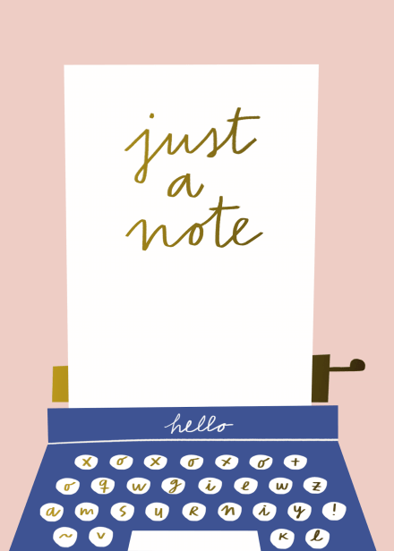 ‘Just a Note’ gold foil blue typewriter greetings card. Digital illustration with hand lettering, 2018 – exclusive for M&S