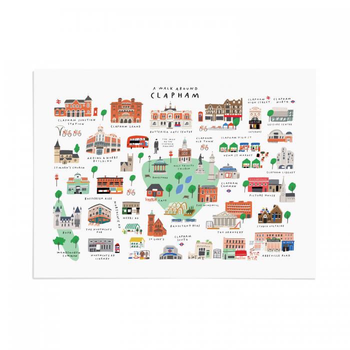 Series of illustrated walking maps of South London’s most iconic neighbourhoods, featuring main landmarks, buildings and local’s favourite spots – exclusive for Place in Print studio