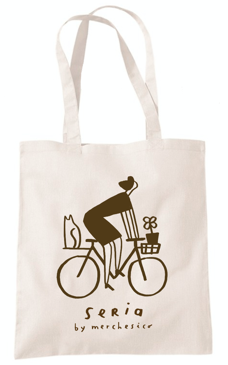 seria japan yen shop color the days mercedes leon illustration eco bag tote cycling bike woman cat