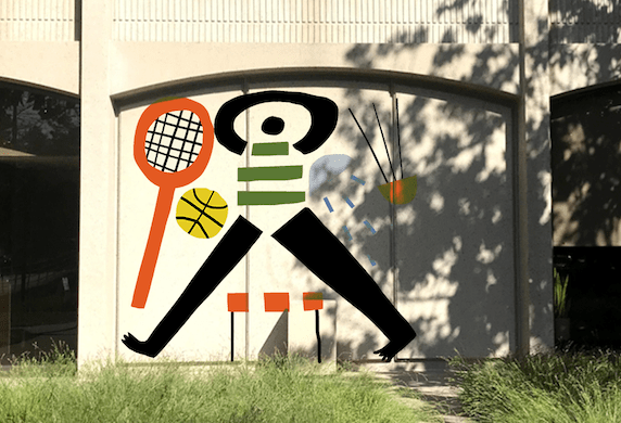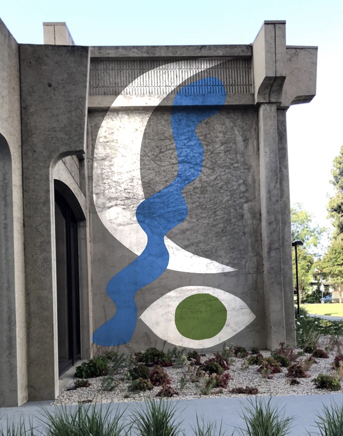 Regeneration project of Palo Alto Square – proposal for outdoors mural paintings / wall illustrations. Improvements would include a new cinema, uni site, gym, meeting spaces and other facilities. Case study for LUX Design, CA